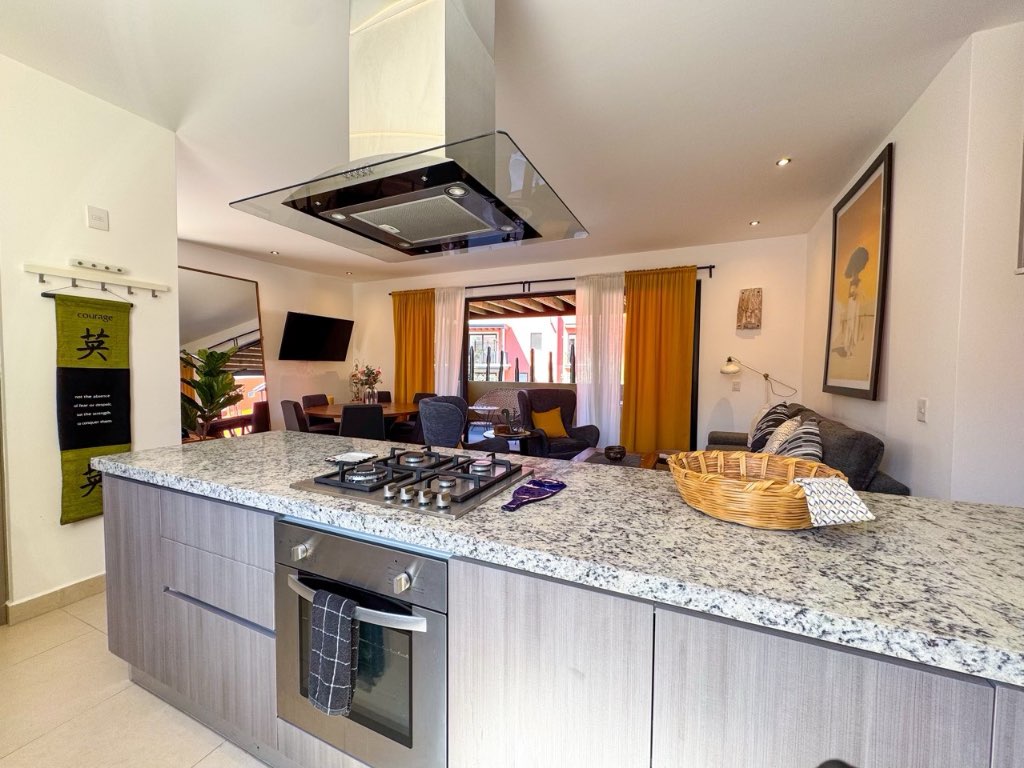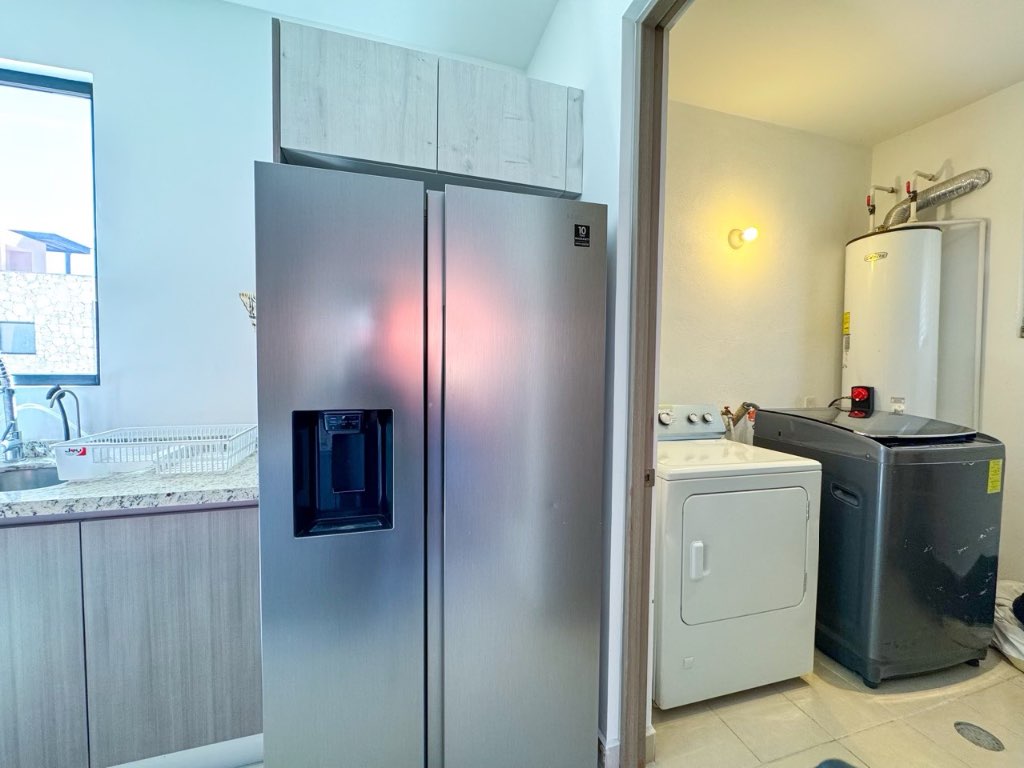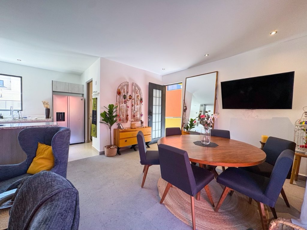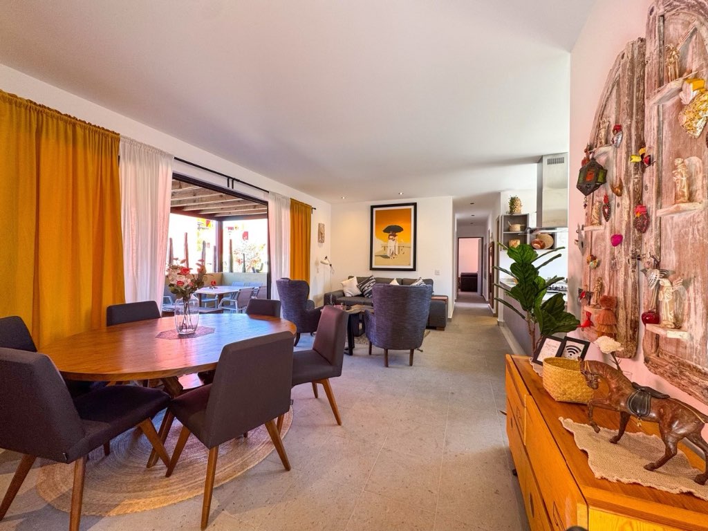 The property offers 3 bedrooms, each with its own en-suite bathroom, plus a guest half bath. Living and dining areas open to a private terrace, ideal for enjoying the views and outdoor living. The kitchen is spacious and practical, complemented by a separate laundry room.
